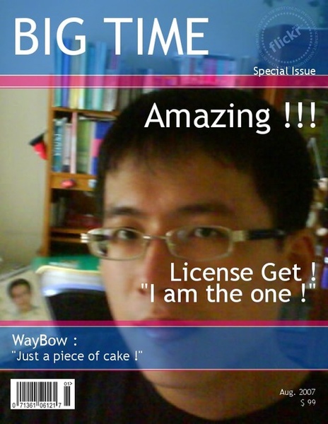 沒想到我考上駕照竟然轟動到連國際雜誌 BIG TIME 都來拍照當八月底特刊的封面...